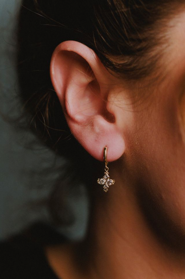 The Iria Earrings balance timeless design with delicate detail. Crafted in diamond, ruby, or champagne diamond for an subtle effortless addition to any jewelry collection.